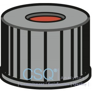 Screw closure, N 8, PP, black, center hole, Red Rubber/FEP colorl., 1.3 mm