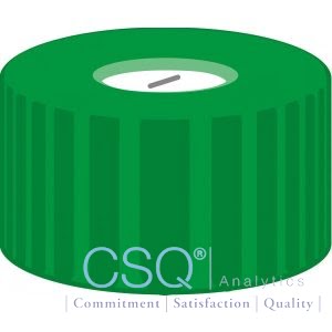 Screw closure, N 9, PP, green, center hole, Silicone white/PTFE blue, slit,1.0mm