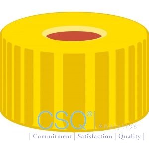 Screw closure, N 9, PP, yellow, center hole, Red Rubber/FEP colorless, 1.0 mm