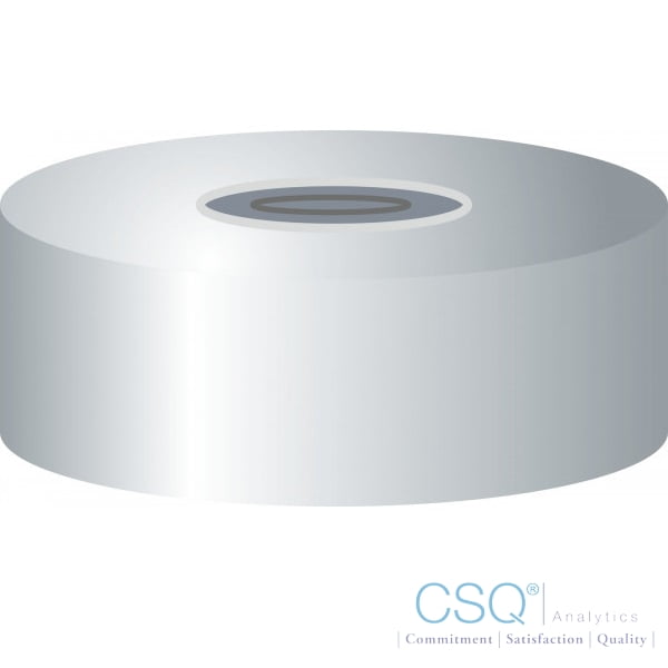 Magnetic metal crimp closures support transportation of the vial via magnet, as for e.g. in the CTC Combi PAL, the Shimadzu AOC 5000/6000 or the Gerstel autosampler. They are generally more difficult to crimp/decap which is why Headspace screw neck vials N 18 may be a more convenient alternative. This product is only centrically laminated, typically called Pharma-Fix. Septa are assembled, caps are ready-to-use. Septa are shown for illustration purposes only, images upside down.