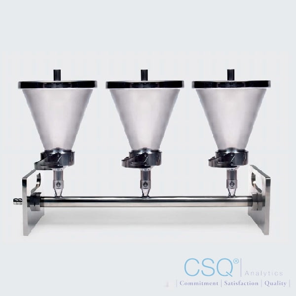 - Body and the funnels are manufactured from AISI 304 quality stainless steel to be used at food, beverage, pharmaceutical and water quality laboratories.