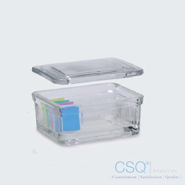 - Manufactured from heavy walled soda glass for holding microscope slides horizontally.