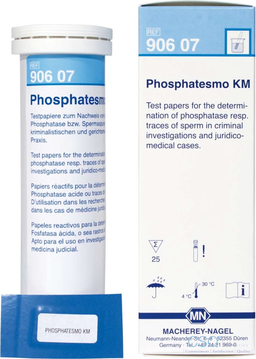 Phosphatesmo KM allows the quick and easy detection of sperm. In criminal investigations the test is used as a rapid screening test. The paper is specific for acid phosphatase.