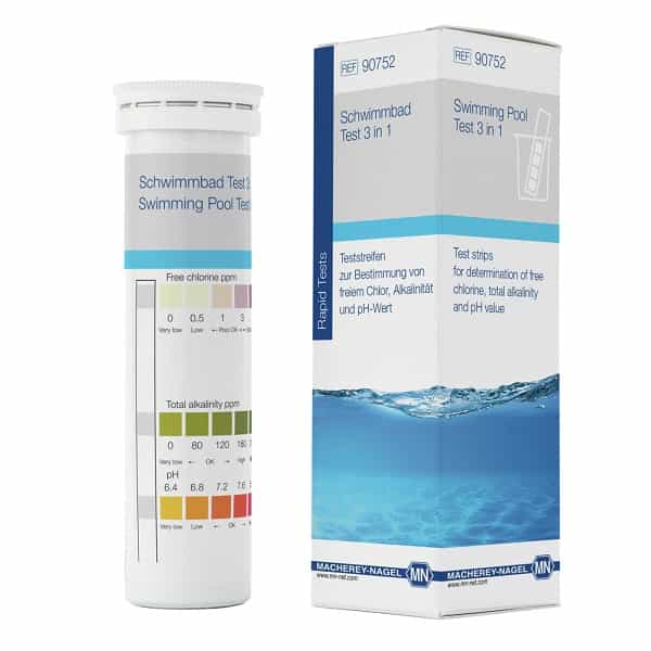 | Gradation | Alkalinity – 0 • 80 • 120 • 180 • 240 mg/L CaCO₃, Free chlorine – 0 • 0.5 • 1 • 3 • 5 • 10 mg/L Cl₂, pH – 6.4 • 6.8 • 7.5 • 7.6 • 8.4 |