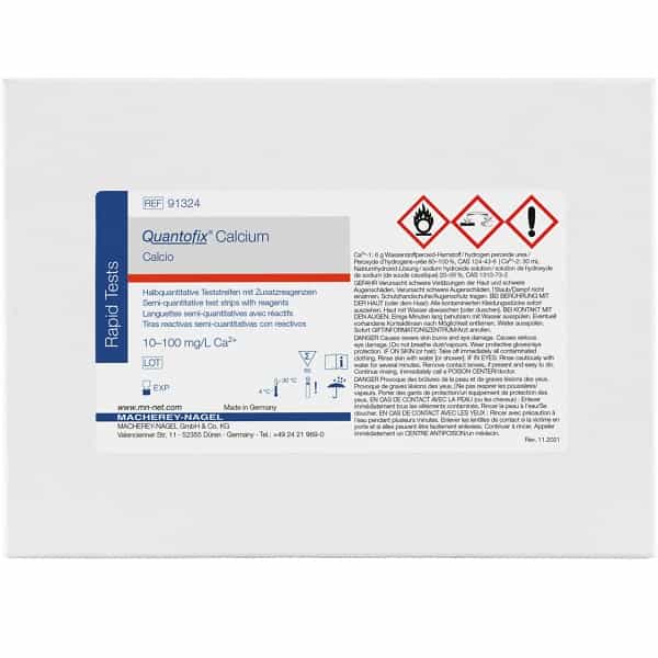 Semi-quantitative test strips for the determination of Calcium. Ideal for rapid and easy analysis of Calcium directly on-site. No maintenance or calibration is required.