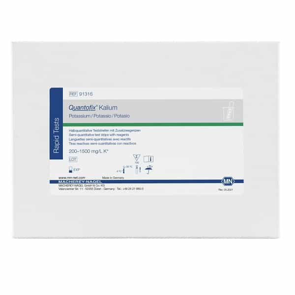 Semi-quantitative test strips for the determination of Potassium. Ideal for rapid and easy analysis of Potassium directly on-site. No maintenance or calibration is required.